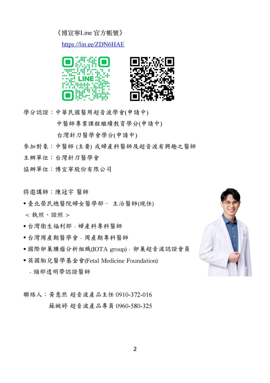 Course Information / 課程資訊 首頁 課程資訊 婦科超音波工作坊-基礎班(報名請填寫內文連結) 婦科超音波工作坊-基礎班(報名請填寫內文連結) 婦科超音波工作坊-基礎班 報名相關問題請洽 聯絡人: 黃意然 超音波產品主任 0910-372-016 蘇婉婷 超音波產品專員 0960-580-325 簡章下載 截止日期:2026-02-25 種類 日期 時間 主題 講師 地點 學分 立即報名